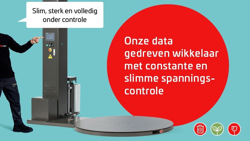 Those who choose certainty in the packaging process benefit from the combination of the data-driven winder and Fiber Film Marathon from Topa. Together, they form a solution that not only optimally stabilizes loads, but also provides insight and savings.