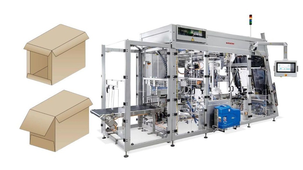 The compact machine concept enables the erecting, filling and closing of wrap-around packages, from flat blanks, on a minimum of space.