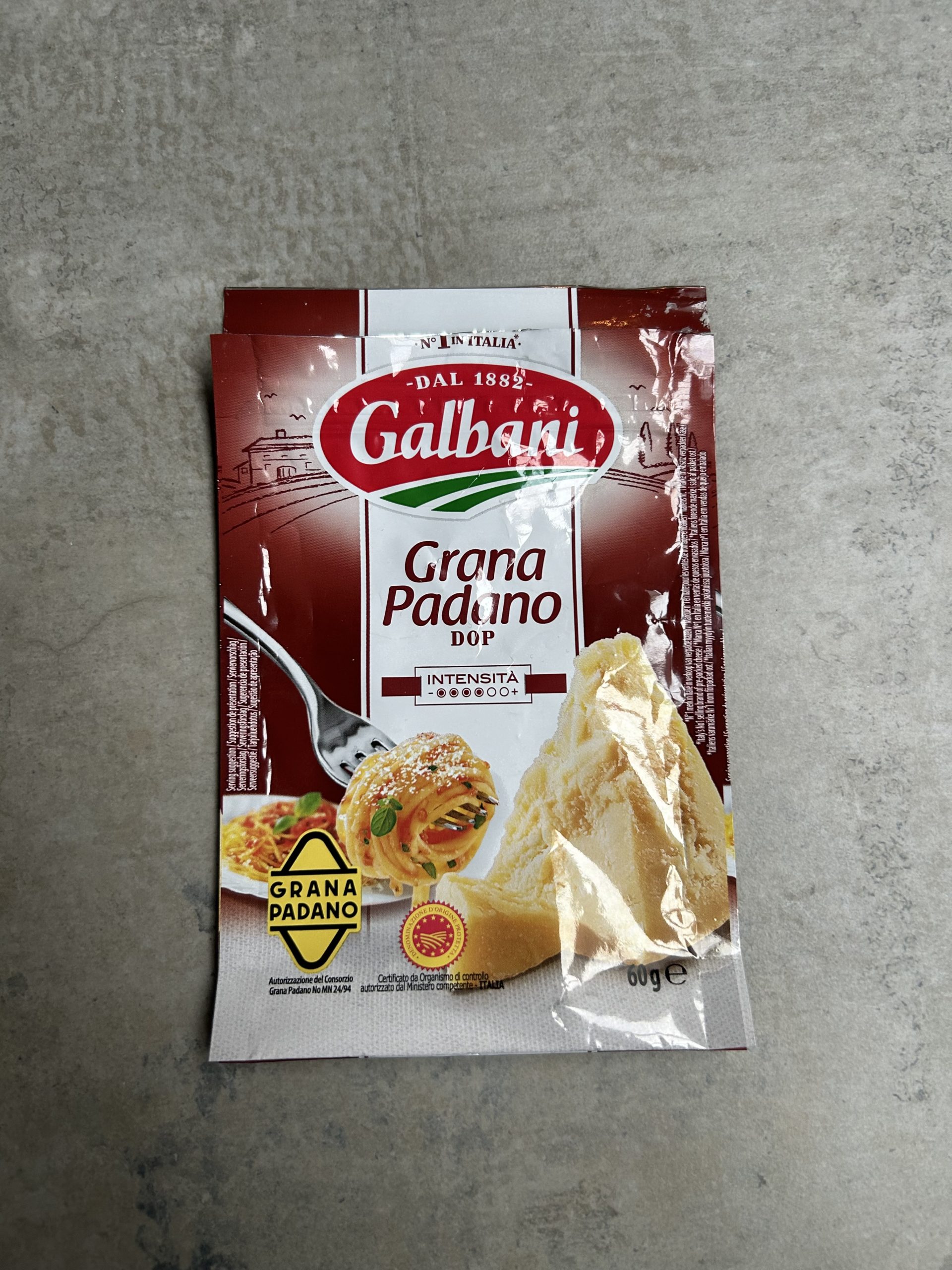 Wie houd er niet van lekkere kaas voor bij de Italiaanse pasta. Zo vond ik onderstaande verpakking op de website van de supermarkt op wielen. Gemakt dient de mens, dus met het oog op een lekkere pasta dit zakje besteld en werd netjes de volgende dag op afgesproken tijd bezorgd, samen met de overige boodschappen die komende week noodzakelijk zijn.