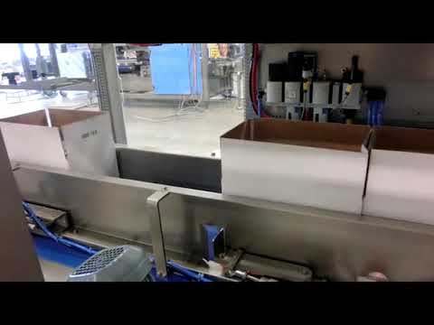 Dit systeem belaadt volautomatisch zakken in dozen of kratten. De zakken worden aangevoerd via een toevoerband. Op de toevoerband worden de zakken eventueel gedraaid (optie). Vervolgens worden de zakken verzameld, tot een rij van één of meerdere zakken is gevormd. Overlap is daarbij ook mogelijk wat resulteert in een optimale productverdeling in de productdrager. De hele rij wordt dan getransporteerd naar de valkleppen. Een compressieplaat sluit de productrij aan de achterzijde op. Een zijdelinkse compressie van de zakformatie, bestaand uit twee verticale banden boven de valkleppen met manuale verstelling, is ook mogelijk. (Optie) Na het openen van de valkleppen worden de zakken in de productdrager geplaatst. Meerdere lagen kunnen zo beladen worden. De productdrager trilt tijdens het beladen (optie) zodat een optimale vulgraad wordt bereikt.