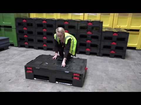 De Smart Sleeve Pack is een vouwbare multi-trip verpakking bestaande uit een kunststof pallet, een honingraat structuur opzetrand en een deksel.